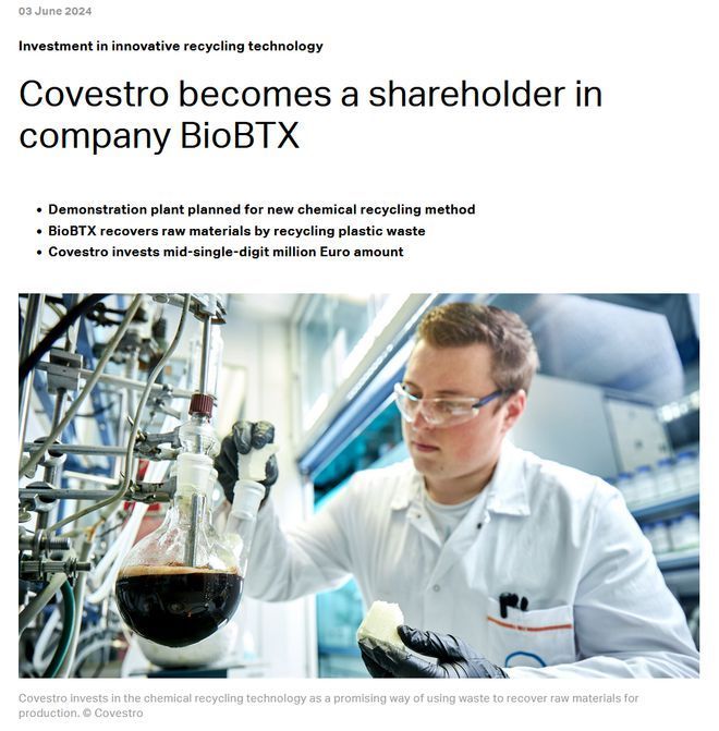 科思創(chuàng ),新投資一家塑料回收公司,2萬(wàn)噸/年6月3日,科思創(chuàng )表示已斥資數百萬(wàn)歐元入股塑料回收企業(yè)BioBTX,計劃在荷蘭建設全球首個(gè)采用BioBTX ICCP技術(shù)的化學(xué)回收塑料示范工廠(chǎng)。該工廠(chǎng)設計年產(chǎn)能2萬(wàn)噸/年,計劃于2027年初投運?! ∈澜缟系谝粋€(gè)BioBTX ICCP 技術(shù)創(chuàng )新示范工廠(chǎng) 據悉,BioBTX ICCP技術(shù)可從不同來(lái)源的有機和混合塑料廢料中回收可再生芳香族化合物,如苯、甲苯和二甲苯等并用于循環(huán)應用?! ⊥ㄟ^(guò)作為 BioBTX 公司的戰略合作伙伴科思創(chuàng )正在荷蘭建設世界上第一個(gè)BioBTX ICCP 技術(shù)創(chuàng )新示范工廠(chǎng)。該技術(shù)使得從有機和混合塑料廢物中生產(chǎn)苯、甲苯和二甲苯等化學(xué)品成為可能。這些芳烴是化學(xué)工業(yè)的重要組成部分,并用于塑料生產(chǎn)等?! 】扑紕?chuàng )正在投資數百萬(wàn)歐元的中個(gè)位數,以擴大荷蘭的規模除科思創(chuàng )外,金融投資者 Invest-NL 和Infinity Recycling b參與了該項目。一旦投入運營(yíng),示范工廠(chǎng)每年將轉化 20 噸混合塑料廢物。繼過(guò)去幾年該技術(shù)的成功升級之后,示范工廠(chǎng)是該技術(shù)在工業(yè)規模上實(shí)施的關(guān)鍵中間步?! 】扑紕?chuàng )首席技術(shù)官托爾斯滕·德雷爾(Thorsten Dreier) 表示:“我們的愿景是完全符合循環(huán)經(jīng)濟和氣候中和,我們正在尋求所有創(chuàng )新解決方案,讓我們更接近這一目標?!薄盎瘜W(xué)回收可以為閉環(huán)做出重大貢獻,而 BioBTXICCP 技術(shù)是利用廢物回收生產(chǎn)中使用的原材料的一種很有前景的方法?!迸c其他回收技術(shù)不同,該技術(shù)還使來(lái)自不同來(lái)源材料的混合廢物適合該過(guò)程。圖源:科思創(chuàng ) BioBTX簡(jiǎn)介 BioBTX是荷蘭一家循環(huán)回收企業(yè),公司主要通過(guò)自研的ICCP技術(shù),生產(chǎn)化學(xué)品和芳烴。上述正在建設的是其首個(gè)商業(yè)化工廠(chǎng),目前該項目已獲得包括科思創(chuàng )在內超8000萬(wàn)歐元的融資?! 」_(kāi)信息顯示,科思創(chuàng )與BioBTX合作時(shí)長(cháng)已超4年,雙方還簽署有兩個(gè)共同開(kāi)發(fā)協(xié)議,涉及科思創(chuàng )產(chǎn)品回收的進(jìn)一步研發(fā)以及產(chǎn)品數字化生產(chǎn)等。此外雙方還共同參與了由歐盟資助的Circular Foam 熱解回收硬質(zhì)聚氨酯泡沫項。來(lái)源:廢塑料新觀(guān)察 (R-11) 2024-06-05 【節能環(huán)?!?/div>